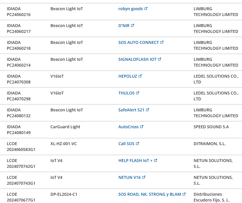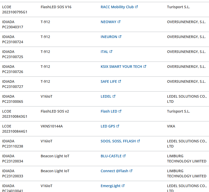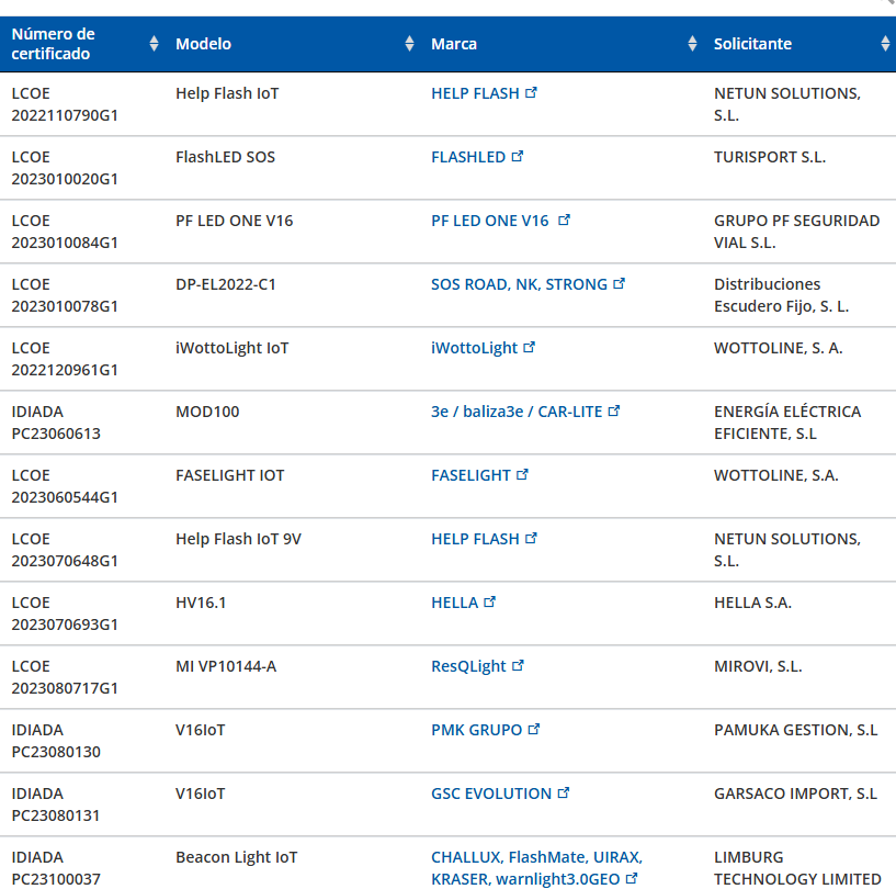 Todos los modelos de luces V-16 que cumplen los requisitos técnicos exigidos por la DGT se pueden consultar en su página web. Este listado se irá ampliando, conforme los fabricantes vayan presentando sus propias balizas y vayan cumpliendo con el reglamento.