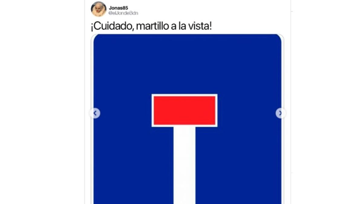 A la del martillo se suma otra, también cómica. Esta señal fue denominada como ‘¡Precaución! Huevo frito’. En realidad se trata de la R-3, que significa que los vehículos que circulan por esa calzada tienen prioridad con respecto a los conductores que se aproximen desde otras vías en las intersecciones que se vayan encontrando.