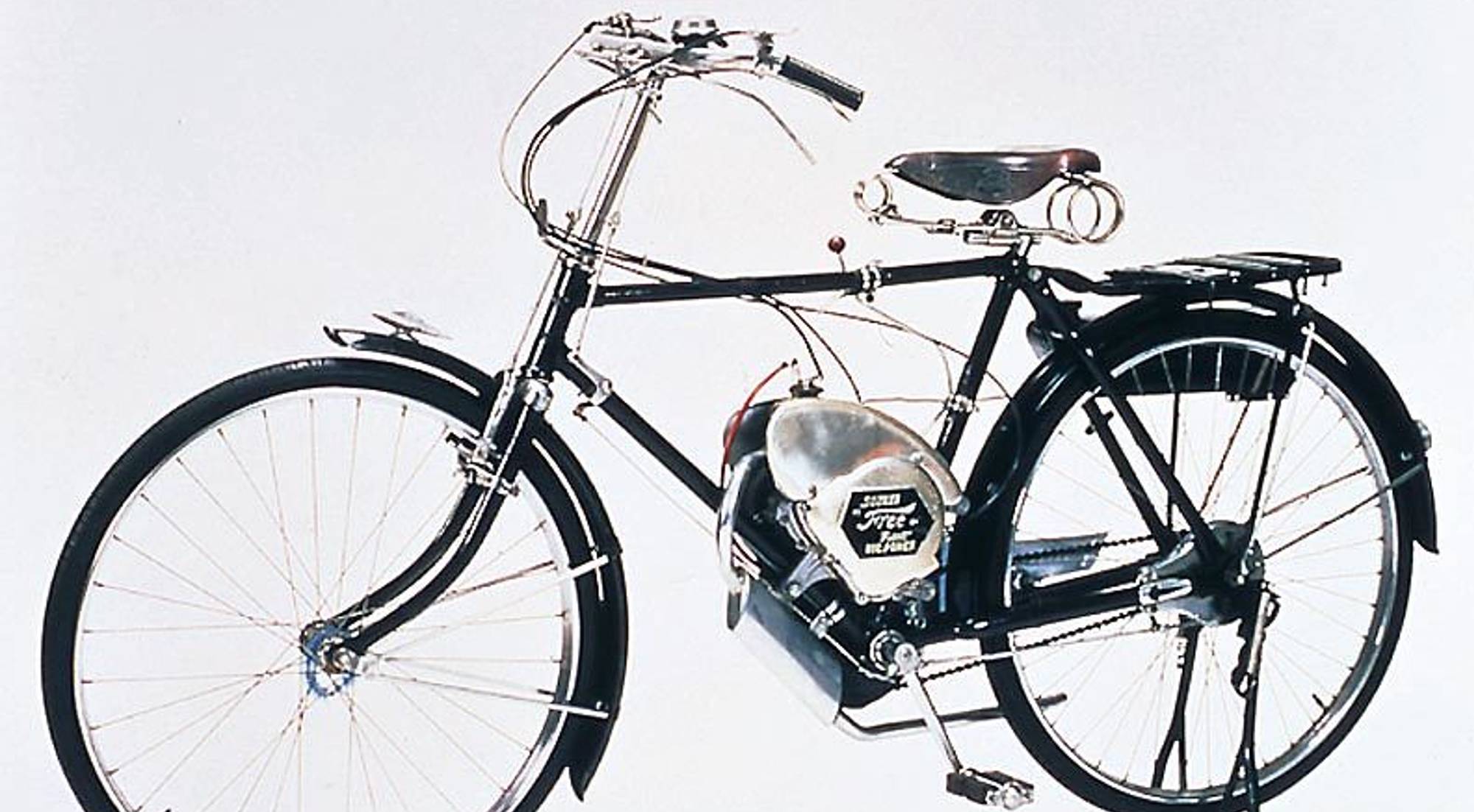 Michio Suzuki no tardaría en encontrar una aplicación práctica a sus diseños. El fuerte viento dominante en la costa Sur del Japón, hacía muy penoso el desplazamiento diario en bicicleta, un medio de transporte que era el habitual por aquellos tiempos en el empobrecido Japón de la posguerra. Un pequeño motor de apoyo sería la solución.
