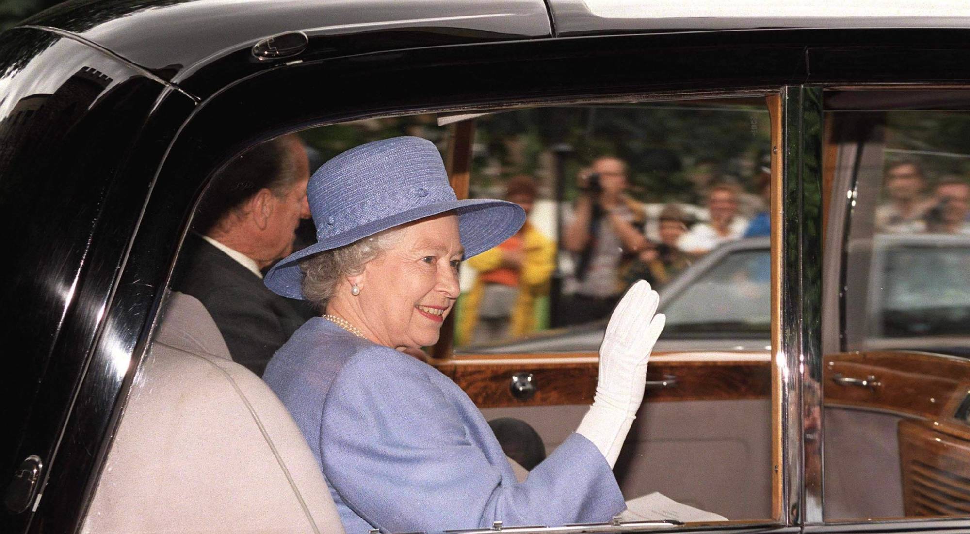 Isabel II y su marido Felipe de Edimburgo en el interior de su Rolls-Royce Phantom VI (1977).