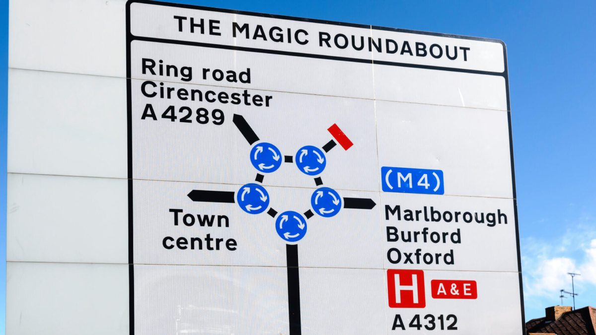 Esta rotonda se encuentra en Swindon (Inglaterra) y fue inaugurada en 1972. Su nombre oficial era County Islands Ring Junction, pero nadie empleaba esta denominación. Razón por la que a finales de los años 90 fue rebautizada con su apodo y pasó a llamarse The Magic Roundabout, la Rotonda Mágica. Para ello se inspiraron en un programa infantil de televisión de los años 50 y 60.