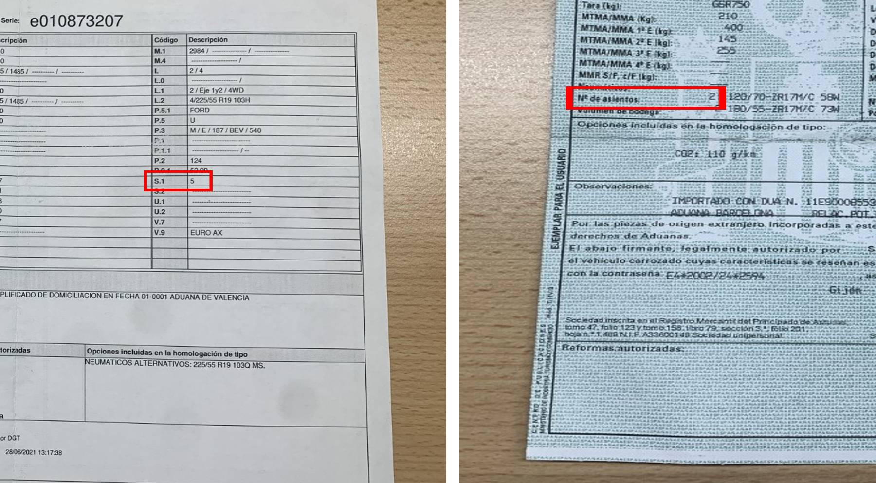 Encontrar este apartado en la ficha técnica es muy sencillo. En las más modernas, que son de color blanco, hay mirar en la sección que cuenta con el código S.1 y a continuación se muestra las plazas máximas en número. En las fichas técnicas más antiguas, de color verde, se puede ver en la columna de la izquierda, en la zona baja, con el nombre: Nº de asientos. A continuación, muestra las plazas máximas.