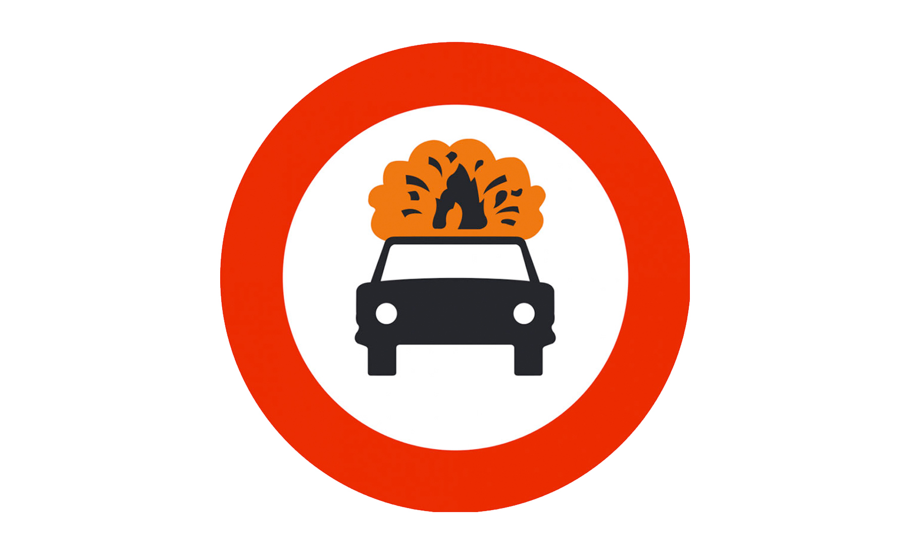Señal R-109, el coche con fuego