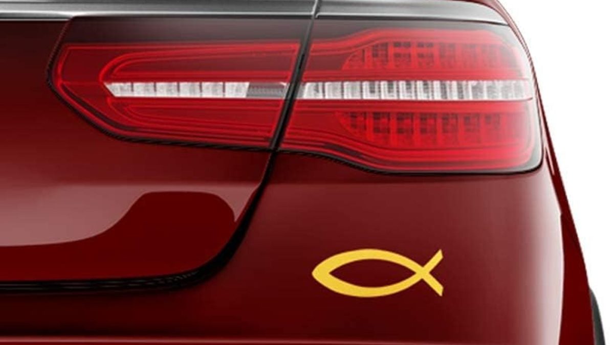 Al igual que algunos conductores cuelgan un rosario en el retrovisor del coche y otros colocan algún santo o santa en el salpicadero, otros creyentes deciden apostar por pegar el símbolo del pez Ichthys en el exterior del vehículo. Sea como fuere, bien se usen por protección o por convicción, si se ve esta pegatina en un coche ya se sabe que la persona a bordo es creyente.