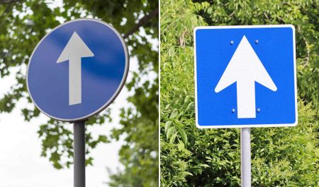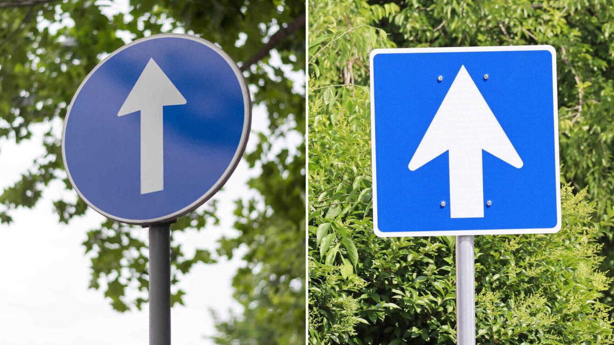 Las señales que tanta confusión generan tienen una flecha blanca sobre un fondo azul: elementos comunes que pueden llevar a pensar que su significado es el mismo. No es así porque hay algo que marca la diferencia: su forma.