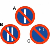 La señal con la letra C hace referencia a los días del mes. Así, no se podrá estacionar en la calle durante los primeros 15 días del mes. También existe una señal de tráfico que indica que no se puede aparcar en la última quincena, apareciendo los números 16-30 en ella.