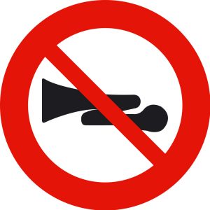 En el resto de supuestos, silencio absoluto. Incluso existe la señal R-310 (no todos recordarán ya la autoescuela), que sirve para indicar expresamente la prohibición de tocar el claxon, y se sitúa habitualmente en zonas cercanas a hospitales o residencias de ancianos.