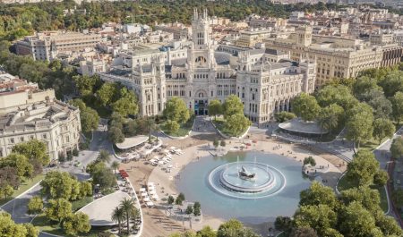 Así, por ejemplo, recrea lugares emblemáticos de las grandes capitales como la plaza de Cibeles, completamente transformada en una zona verde, con una laguna central y rodeada por una playa.