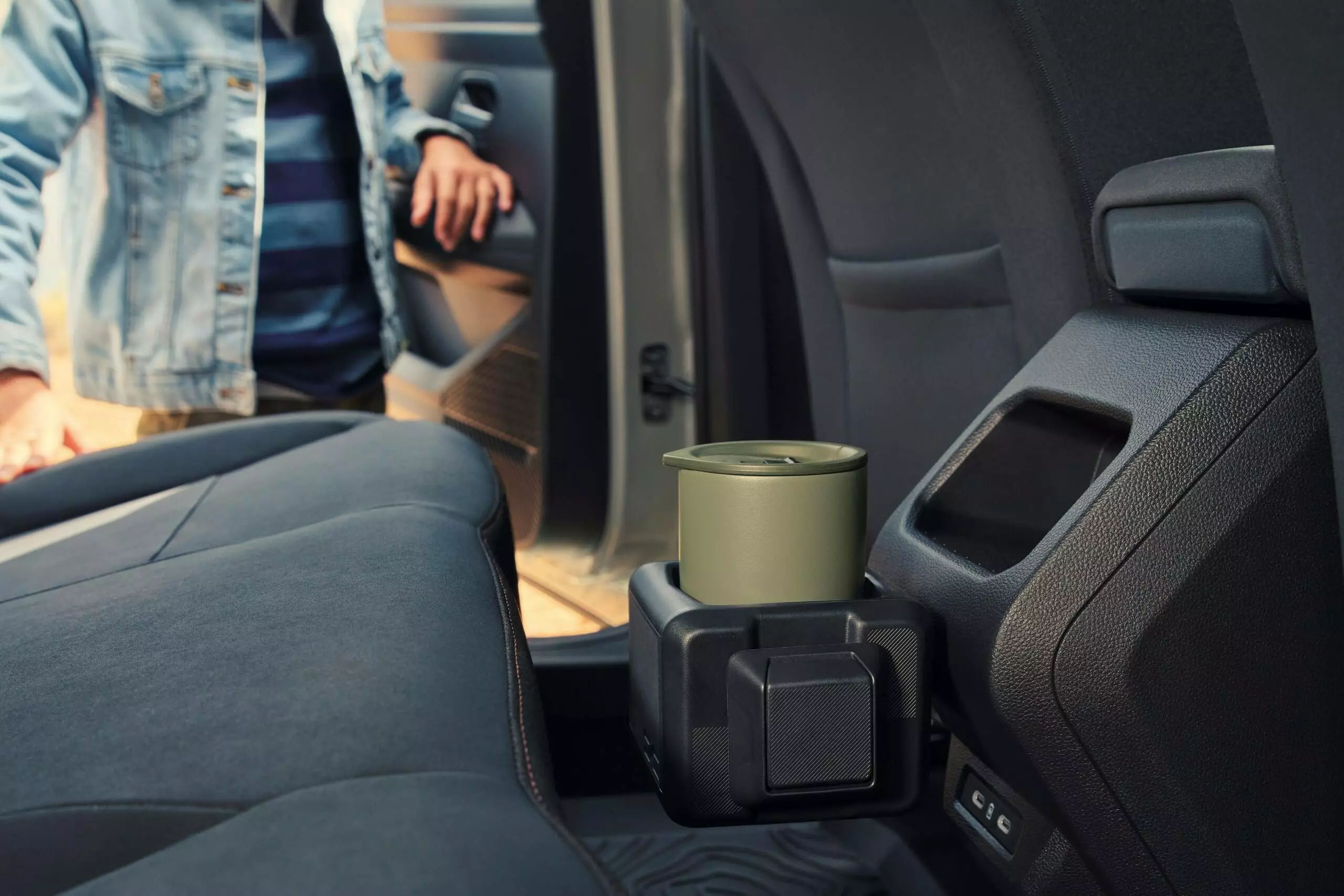 La estrella quizás sea el accesorio tres en uno del sistema YouClip de Dacia. Este consiste en un cubo que hace las veces de portavasos, en el que se puede encontrar un gancho para colgar cosas en uno de los lateriales y también tiene, en otro lateral, una lámpara.