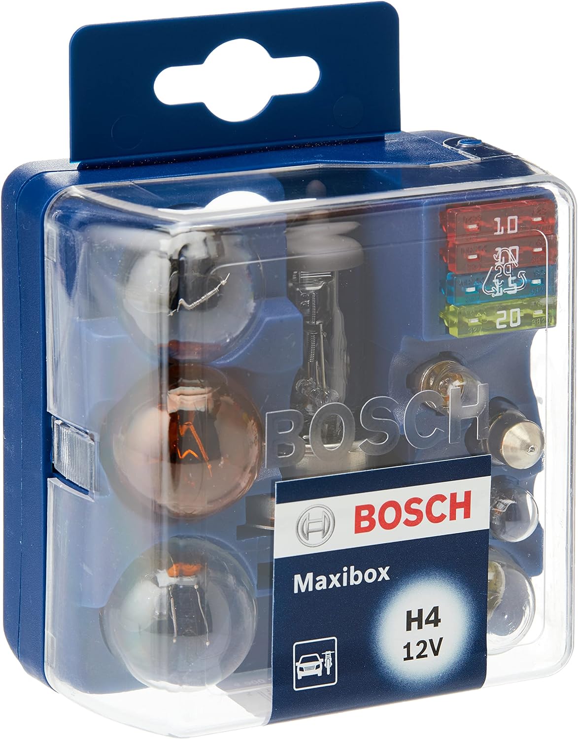 Este kit de Bosch incluye una lámpara de repuesto de tipo H4, además de un juego variado de bombillas (P21W + PY21W + R5W + T4W + P21/5W + W5W + C5W) y cuatro fusibles de 10, 15 y 20 amperios. Su pequeño tamaño está optimizado para ser guardado en la guantera, en el maletero o debajo del asiento.