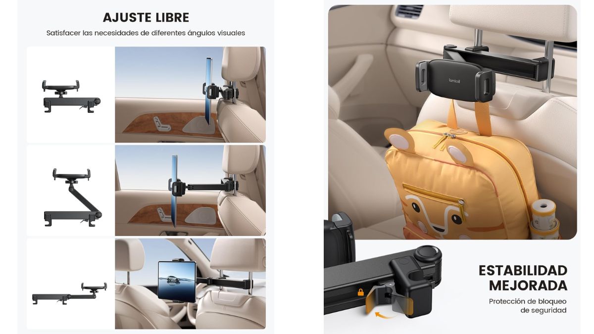 Además de tener un buen sistema de seguridad en el coche para los niños, también es importan encontrar soluciones para mantenerlos entretenidos. Este soporte cuenta con un brazo extensible de mayor alcance, se instala fácilmente en el reposacabezas del coche y garantiza que los dispositivos se mantengan seguros, evitando una aparatosa caída.