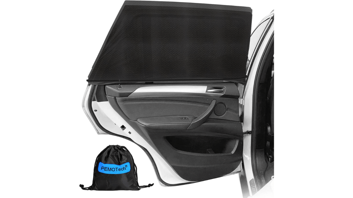 Este set de dos parasoles de doble capa, apto para la mayoría de los coches, está disponible en dos tamaños diferentes (de 59 a 101 centímetros de largo y de 48 a 69 de alto). Gracias a la elasticidad de su material (spandex), se ajusta con precisión al contorno exterior e interior de la ventana, permitiendo bajarla con total libertad, de manera que se pueda disfrutar de la brisa sin renunciar a la protección frente al sol. Cuenta con certificación de protección UV y es totalmente transpirable.