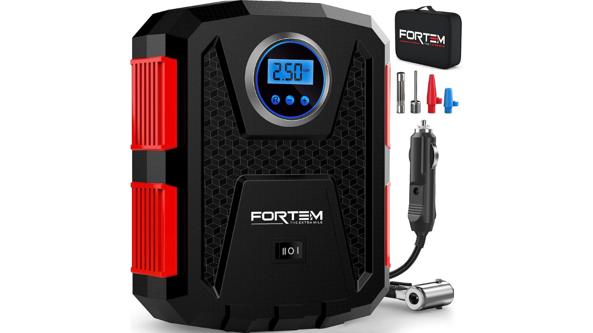 Con este compresor de aire portátil y compacto, podrás actuar frente a cualquier emergencia. Está equipado con una pantalla LED de fácil lectura y uso sencillo: tan solo necesitas arrancar el coche y conectarlo a la toma del mechero, gracias a su cable de 4,5 metros. Además viene equipado con tres boquillas distintas y también puedes usarlo para inflar otros vehículos (como motos o patinetes) o pelotas.