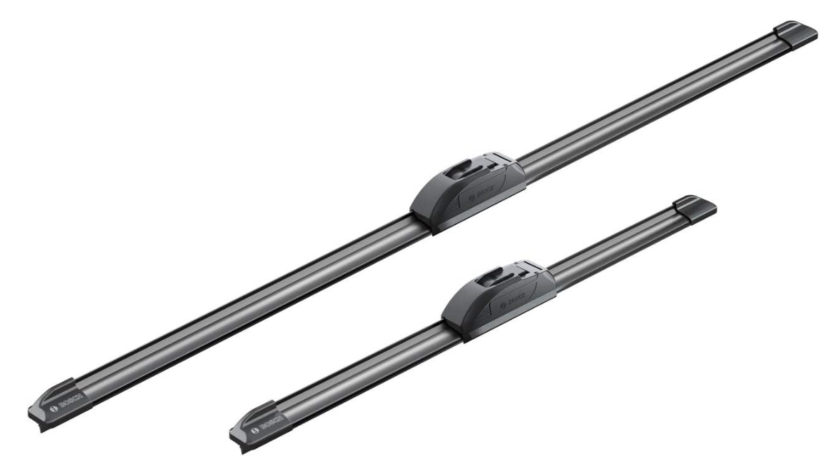 Un juego completo para el parabrisas frontal que incluye la escobilla del lado del conductor (con una longitud de 65 centímetros) y la del acompañante (de 40 centímetros). Son de fácil instalación y tienen un funcionamiento silencioso tanto en mojado como en semiseco.