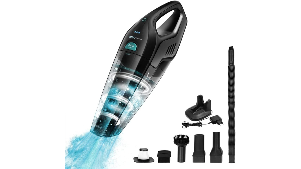 Aspirador de mano de sólidos y líquidos ligero, práctico y potente. Está equipado con una batería extraíble de Li-Ion que duplica la vida del aspirador. Diseñado sin cables, podrás aspirar tu hogar o vehículo con total libertad. Dispone de una batería de 22,2 V y autonomía de 25 minutos, y es el más vendido en Amazon dentro de su categoría.