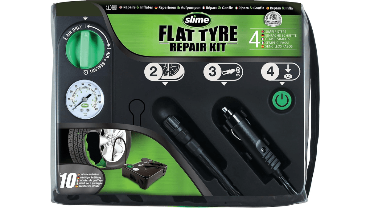 Pero, ¿y si hubiera una solución más rápida y fácil? Para eso existe el kit de emergencia todo-en-uno de Slime, un accesorio de fácil empleo que permite arreglar el pinchazo rápidamente, con comodidad y sin tener que cambiar el neumático. Y es que el set de Slime está diseñado para volver a ponerse en marcha en apenas 10 minutos, ahorrando tiempo, esfuerzo y frustraciones indeseadas. Y todo por menos de 50 euros.