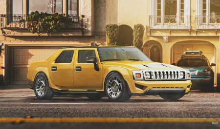 La marca va a renacer en formato eléctrico, pero siempre representará los mastodónticos todocaminos de principios de siglo, derivados de modelos militares. A pesar del cambio de formato, es relativamente fácil adaptar su escudo frontal tan característico, con su moldura cromada, al formato sedán.