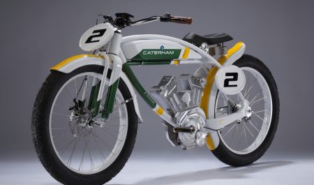 Caterham, la marca británica de automóviles deportivos con aspecto de la vieja escuela, nos mostró un par de bicicletas eléctricas allá por el año 2013, pero que parece que nunca llegarán a comercializarse. Una verdadera lástima porque tanto su factura como sus prestaciones prometían y por ello merece la pena mencionarlas en esta relación, ya que ambas se asemejan más a motos que a bicicletas al uso. La más deportiva es la Carbon E-Bike, construida en fibra de carbono y con un espectacular amortiguador trasero de Marzocchi; mientras que la Classic E-Bike se asemeja a una motocicleta ligera de los años 40 que incluso simula el motor y un falso depósito de combustible. Las dos comparten un poderoso motor eléctrico de 250 W y cambio Shimano Nexus de tres velocidades.