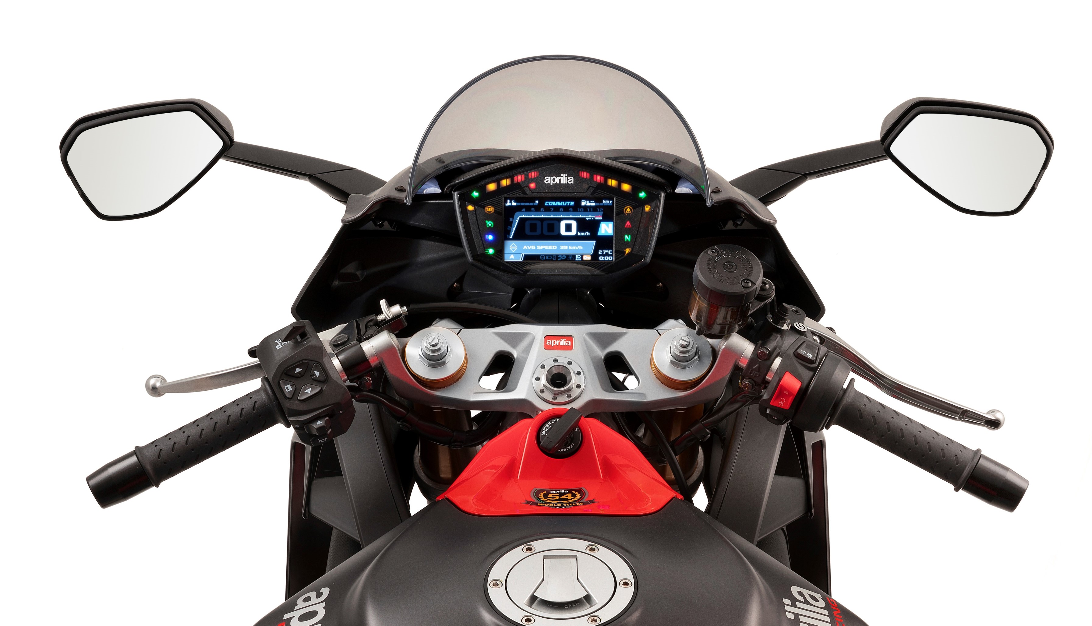 Pero, de nuevo, la RS sorprende y a sus ajustes de carreras suma también otros para mantener un adecuado confort y funcionalidad en los desplazamientos diarios. Así, cuenta con control de velocidad de crucero, faros de led adaptativos en curva y un sistema de conectividad con el smartphone que permite controlar las funciones del teléfono y conocer a través de la aplicación Aprilia MIA diversos parámetros de la moto y el recorrido realizado.