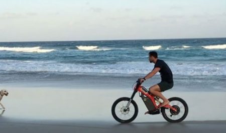 El actor y marido de Elsa Pataki muestra en su Instagram cómo disfruta por la playa con la bici eléctrica española.