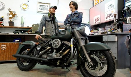 Peter G. Tapia y Efraón Triana son los padres de la criatura, el alma de esta fábrica de sueños que se ha puesto en funcionamiento hace poco tiempo, pero que ya ha construido motos fuera de lo común. Peter se encarga principalmente del negocio (aunque tampoco le cuesta coger la herramienta siempre que puede), mientras que Efraón es el artista del diseño y la mecánica. Ambos han contado tan solo con dos meses para completar el proceso, desde los primeros bocetos en papel hasta tener la moto lista para su presentación esta misma semana.