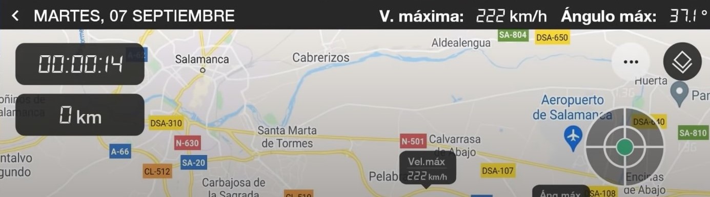 Al día siguiente, el dispositivo le envió una alerta a su teléfono móvil indicando que su moto deportiva se encontraba circulando por la autovía A-50. En concreto, se registró un desplazamiento de 37 kilómetros, a una velocidad media de 82 km/h, pero con una velocidad máxima de 222 km/h.