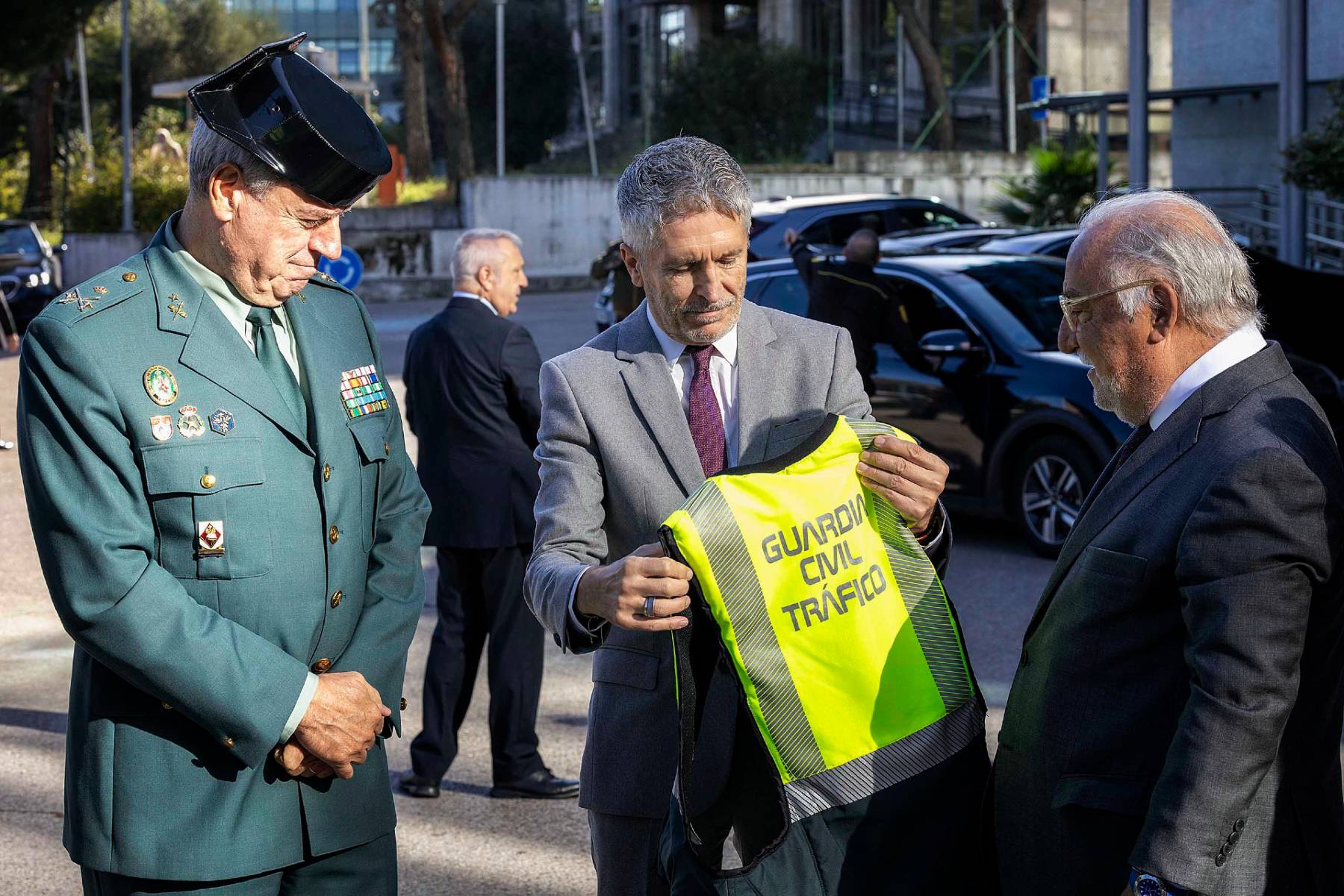 De izquierda a derecha, Tomás García Gazapo (general jefe de la Agrupación de Tráfico), el ministro Grande-Marlaska y Pere Navarro.