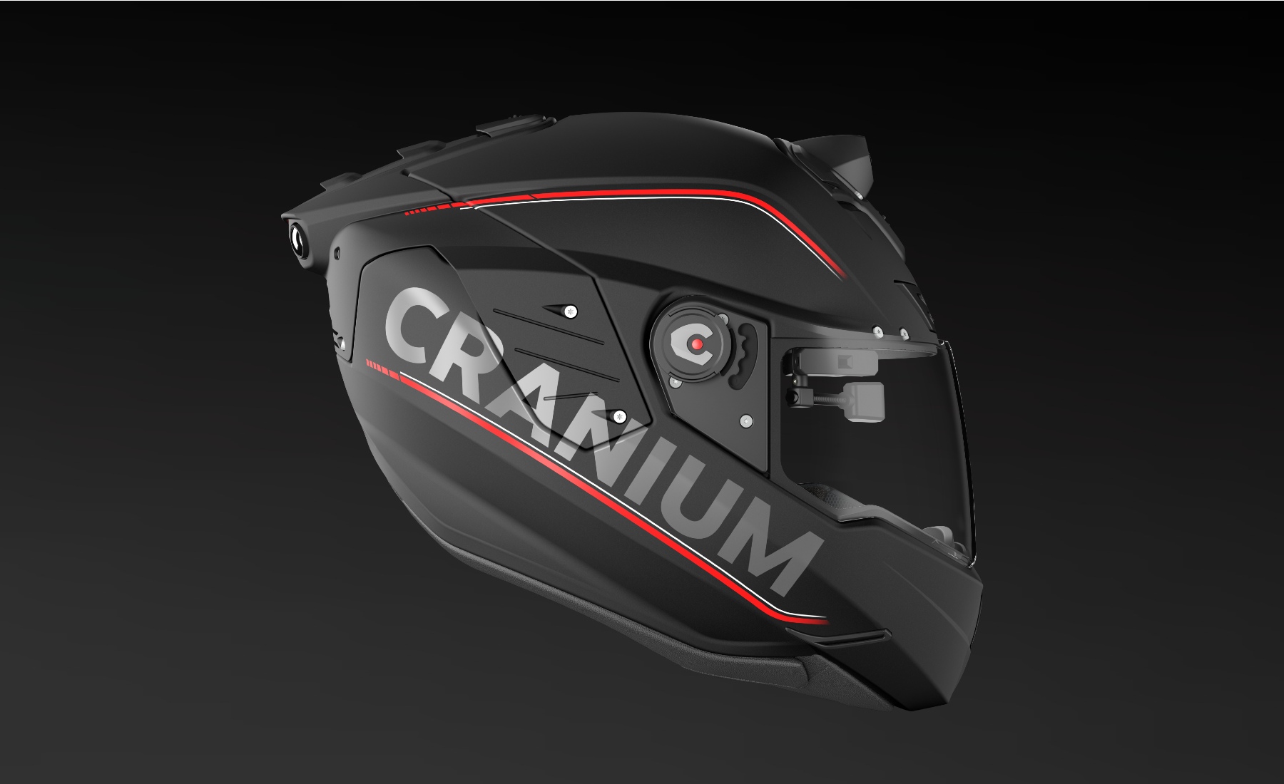 El casco iC-R incorpora una visión envolvente de 360 grados, combinando dos cámaras traseras que ofrecen una transmisión en tiempo real a través de un visor frontal o Head-up Display (HUD) que proyecta las imágenes e información. Además, incluye una cámara frontal de 1080p para grabar los viajes.