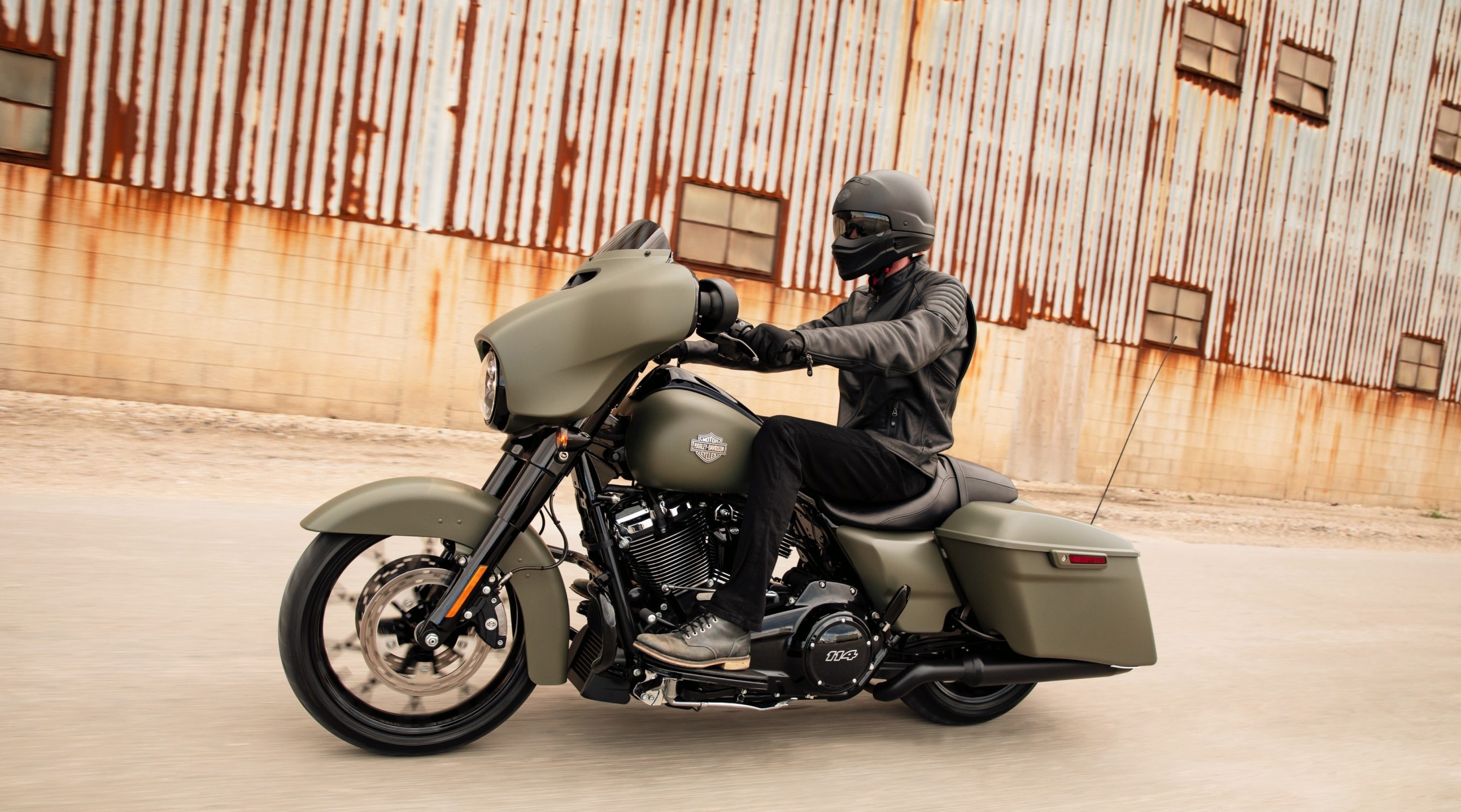 La Street Glide Special es uno de los modelos superiores de Harley-Davidson, y tiene dimensiones colosales: 2,42 metros de longitud, 359 kilos de peso y el enorme motor motor Milwaukee-Eight 114. El bloque de 114 pulgadas cúbicas (1868cc) desarrolla una potencia de 100,6 CV y un par o fuerza de empuje de 161,34 Nm a poco más de 3.000 vueltas, similar al de algunos coches. Y con estas cifras, mueve el tamaño y los kilos del modelo con gran solvencia.