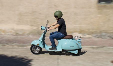 Muestra de ello es el formato de rueda pequeña, el voluminoso guardabarros delantero, el escudo frontal, el faro redondo integrado en la parte delantera del manillar o las redondeadas formas de la zaga. Además, tampoco faltan detalles retro como el asiento de piel marrón o la estructura de aluminio que hace las veces de portamaletas en la zaga.