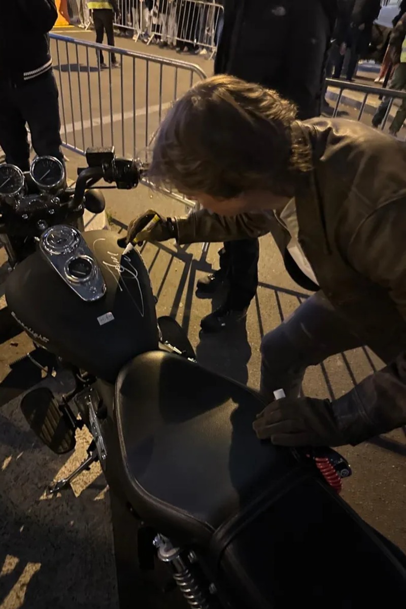 Hace un año, el actor de Misión Imposible dejó su firma en el depósito de esta chopper de estilo retro durante un inesperado encuentro en París. Mientras paseaba por las calles de la capital francesa con motivo de los Juegos Olímpicos, un fan logró acercarse a él con la moto… y Cruise no dudó en firmarla. Las imágenes de ese momento, ahora virales, son parte de la historia.