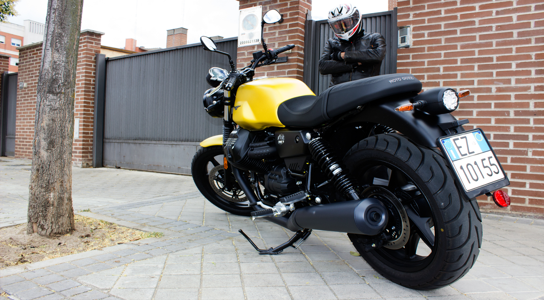 Igualmente, la característica vibración lateral que provoca la disposición transversal del bicilíndrico recuerda que se está a lomos de una genuina Moto Guzzi. La V7 Stone se desenvuelve a la perfección en las atascadas calles. Su asiento bajo (a 78 centímetros del suelo) y una postura de conducción muy ergonómica, incluso para las tallas más grandes, hace de ella una gran arma para el caos circulatorio de las grandes urbes.