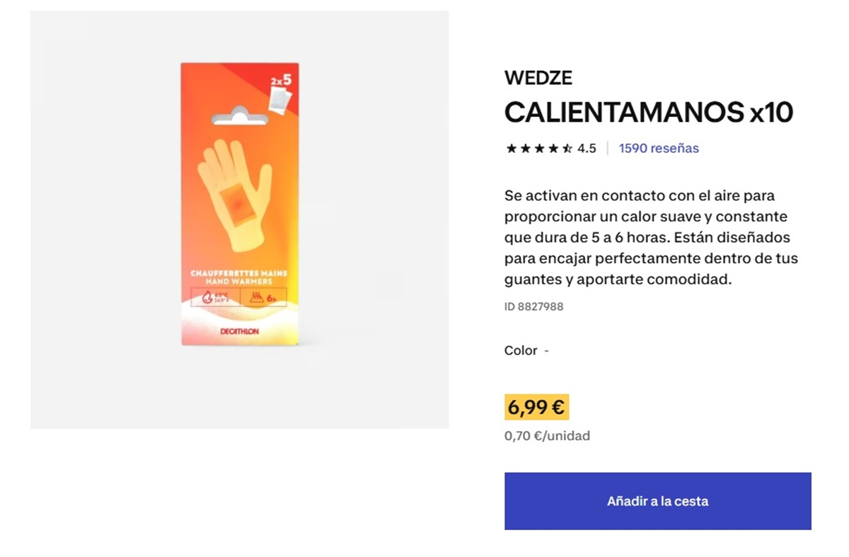 Su precio: menos de 10 euros el pack (por ejemplo el de parches para manos), lo que los convierte en una alternativa económica para quienes buscan combatir el frío sin gastar demasiado. Hay de variados precios y cantidades. Son ideales para los moteros y se colocan fácilmente en zonas estratégicas como pies, manos, espalda o abdomen.