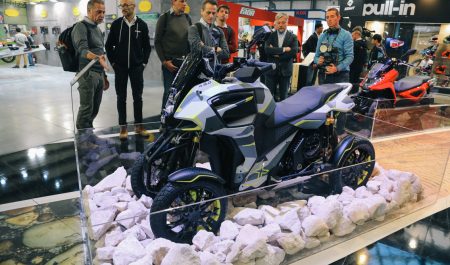 El eQooder comparte la naturaleza eléctrica del anterior, pero se trata de un modelo con cuatro ruedas basculantes equipado con un motor de 45 kW (60 CV) y 110 Nm de par máximo. Su batería le permite recorrer 150 kilómetros y se recarga en menos de seis horas con una toma de 220V. Cuenta además con un selector de modos de conducción para elegir entre Eco, Sport y Personalizado.
