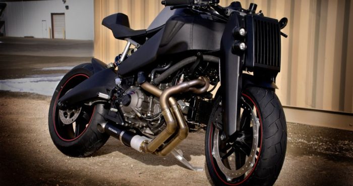 Se trata de la versión de producción de un prototipo presentado en 2010 que se caracterizaba por el diseño de su horquilla y el escueto asiento. De la Buell 1125R conserva el motor, chasis, basculante y llantas, aunque se ha revisado la entrega de potencia a la baja para reducir el sobrecalentamiento del mismo. Son originales la horquilla con el radiador adelantado y las ópticas integradas, el depósito, subchasis, asiento y el particular sistema de escape a loDucati 1199 Panigale. El resultado es una moto tan futurista como minimalista para disfrutar en solitario.