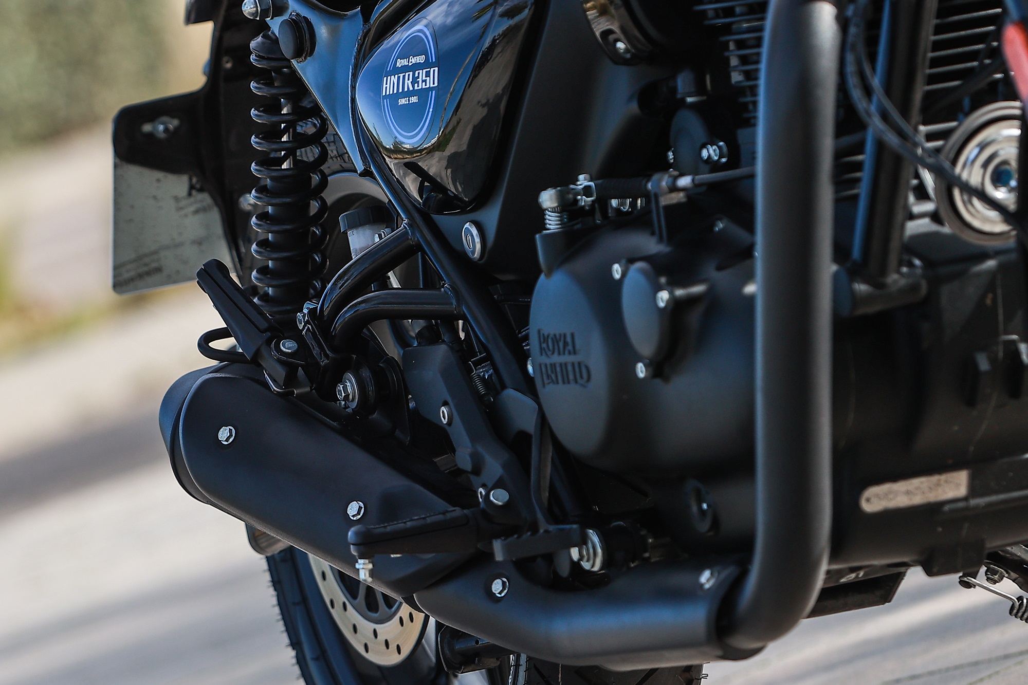Tampoco aparecen alardes, ni falta que hace, en el motor de la Hunter. Un concepto tradicional de un solo cilindro y dos válvulas, un cubicaje de 349cc y una potencia de 20,5 CV. Sí que tiene inyección (los carburadores son historia en la era del control de las emisiones), mientras que la refrigeración es igualmente previsible con la combinación de aire y aceite.