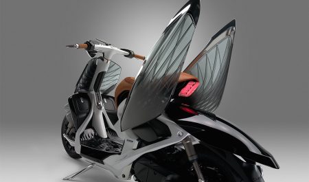Las reminiscencias a la clásica Vespa se encuentran presentes desde el primer vistazo, pero pasado por un tamiz de formas más angulosas y agresivas, a modo de insecto, que dan como resultado un frontal estilizado y una trasera más contundente.