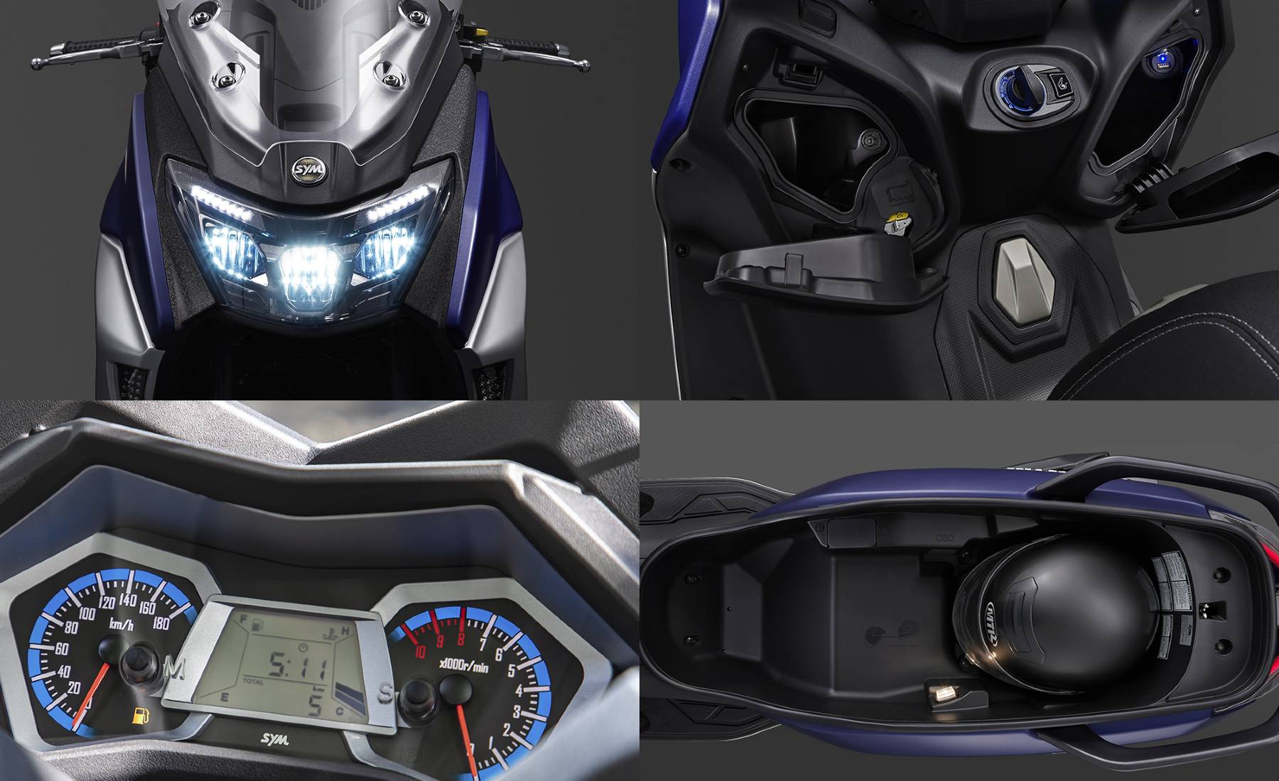 Destacan los vanguardistas grupos ópticos con tecnología led y su característico diseño de corte de diamante en el triple faro delantero. Por su parte, la zaga está rematada por un conjunto de luces que envuelve el conjunto. También presenta una renovada cúpula, más esbelta y que se puede ajustar en dos posiciones manualmente, incluso sin bajarse del escúter.