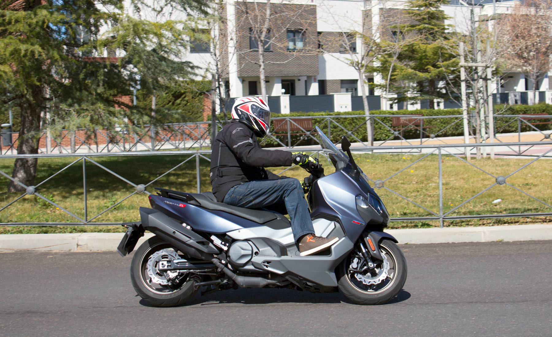 Es cierto que, en parado, se nota un poco pesado. Sus casi 215 kilogramos pueden resultar un poco incómodos para los pilotos de tallas más pequeñas, aunque una vez en marcha, este problema desaparece. El Maxsym TL 508 ofrece un aplomo excepcional en cualquier vía y se conduce de manera muy intuitiva gracias a su motor, que ofrece una entrega de potencia muy progresiva.