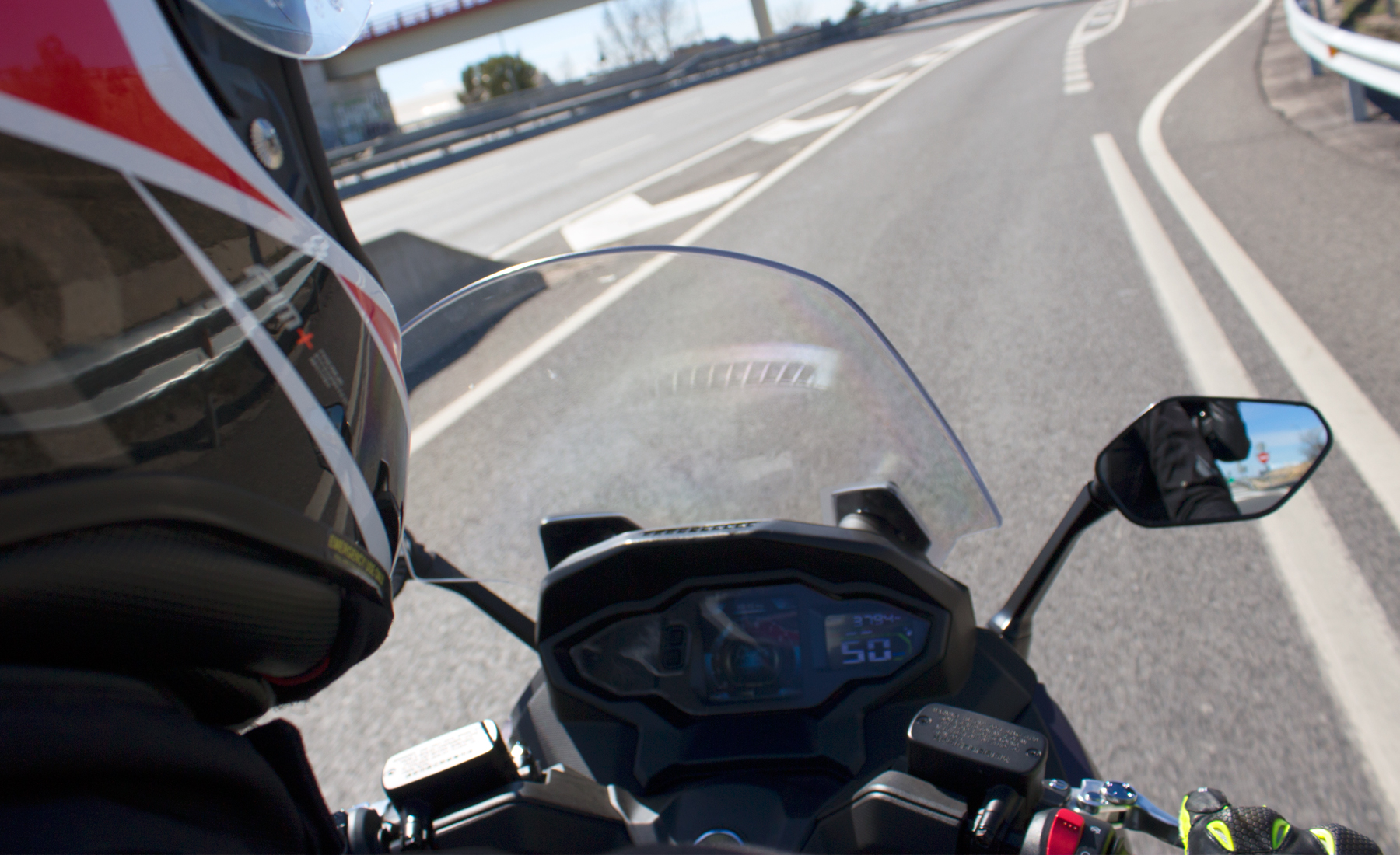 Al llegar a carreteras de segundo orden, su lado deportivo sale a relucir y permite divertirse entre curvas. Las aceleraciones son inmediatas y el chasis y las suspensiones acompañan. Por su puesto que no es una superbike, pero cumple perfectamente para pasar una jornada amena en estas vías.