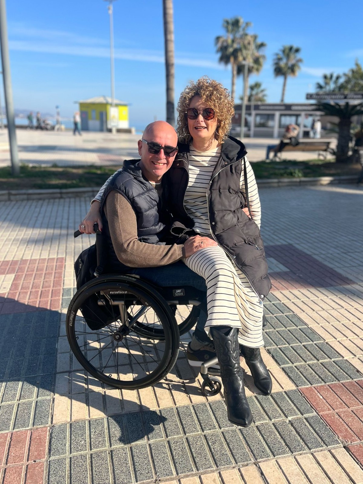 Te enseñan a vestirte, a ducharte, a manejar la silla, a sondarte… Ahí me derrumbé, lloraba, lloraba. La suerte es que mi mujer estuvo cada segundo conmigo y fue la que me ayudó en ese proceso. Es duro, pero se supera. Bueno, cada uno lo supera a su manera, yo por suerte lo llevo bien, pero no es fácil, no todo el mundo…