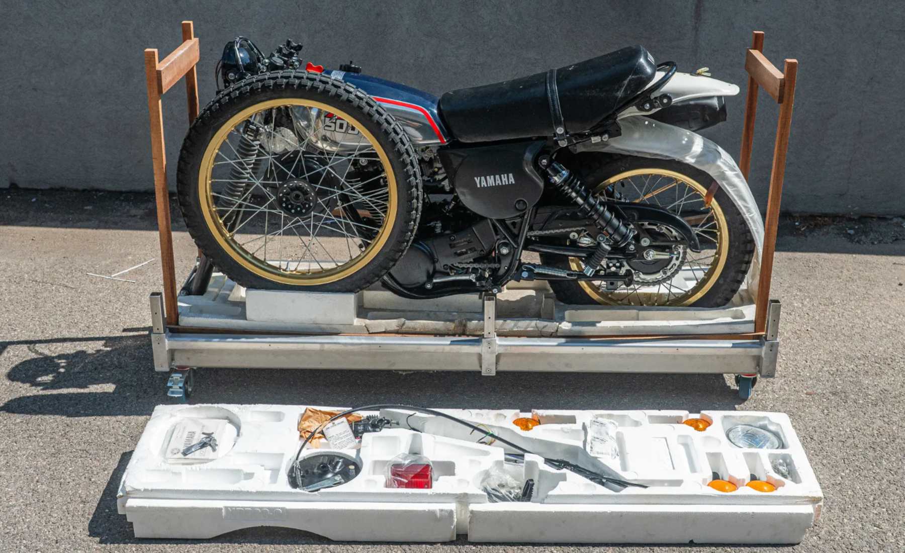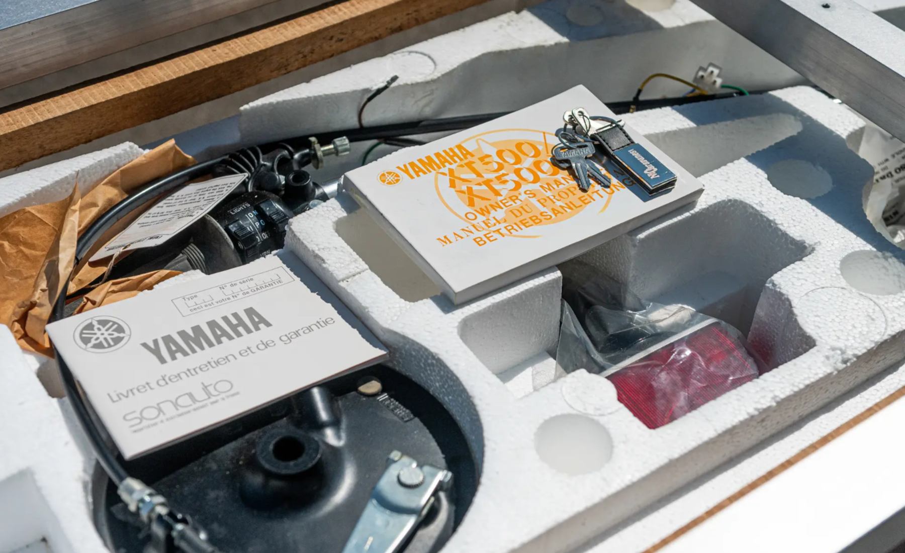 La XT500 fue protagonista de los primeros rallies africanos, como el París-Dakar o el París-Abiyán-Niza. Su motor monocilíndrico a prueba de bombas, su fiabilidad y su carácter aventurero la convirtieron en un icono. Pero esta unidad, registrada en Francia en 1988, jamás fue montada. Su odómetro marca cero kilómetros. Literalmente.