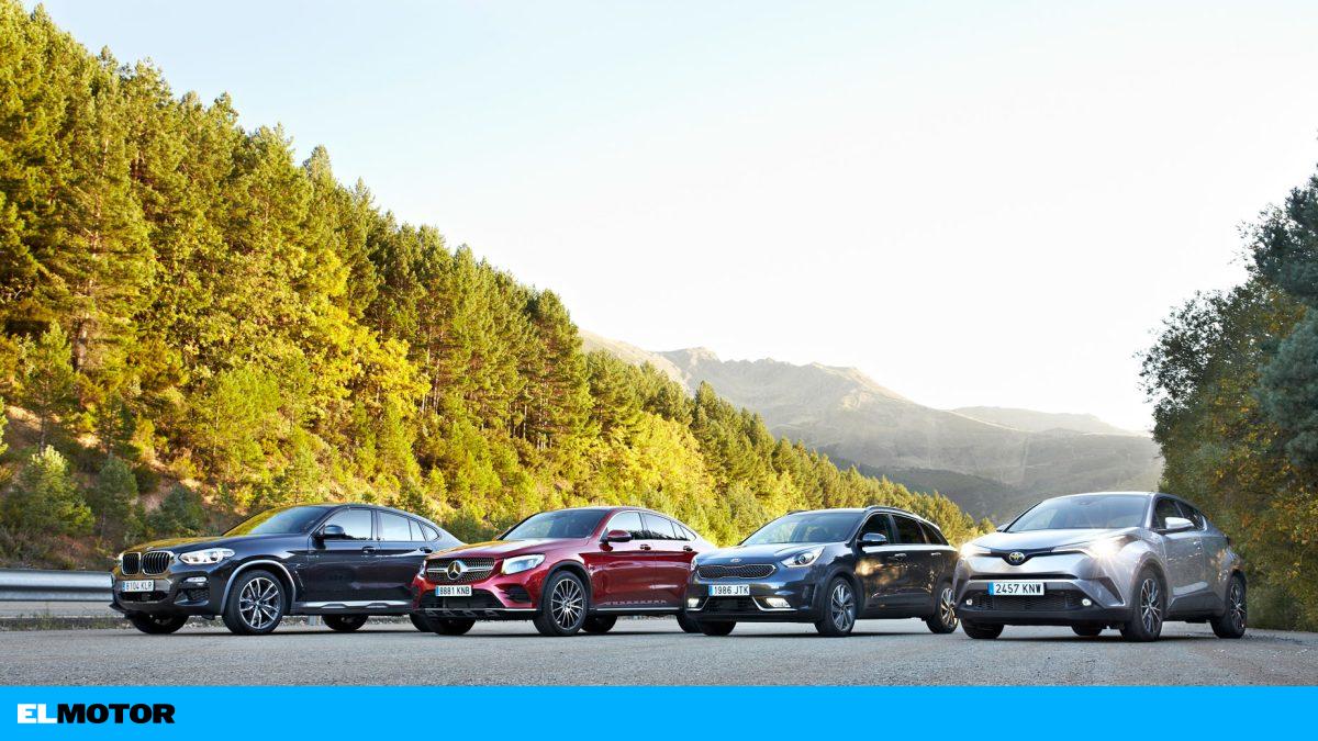 Son las nuevas fórmulas mestizas, modelos que combinan diferentes conceptos, ya sea en la línea o en la mecánica, para presentar soluciones innovadoras y distinguirse de la competencia. Y es lo que proponen los protagonistas de esta prueba, que enfrenta, por un lado, a dos SUV de marcas exclusivas y línea cupé, los BMW X4 y Mercedes GLC Coupé. Y por otro, a dos SUV crossover más compactos de marcas populares, pero con mecánica híbrida, los Kia Niro HEV y Toyota C-HR. Unos y otros representan dos de las tendencias de moda.