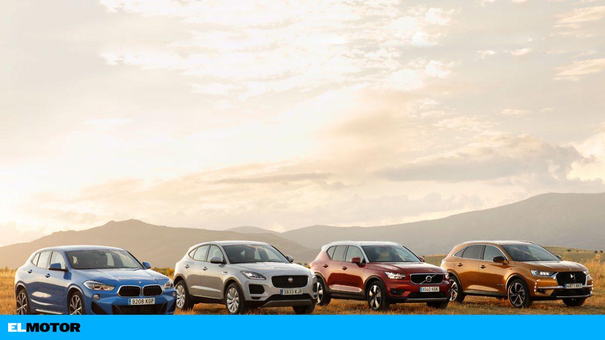Silueta SUV, medidas compactas, estilo deportivo y la imagen y exclusividad de las marcas premium. Es lo que proponen los cuatro modelos elegidos para esta prueba comparativa: BMW X2, DS 7 Crossback, Volvo XC40 y Jaguar E-Pace.