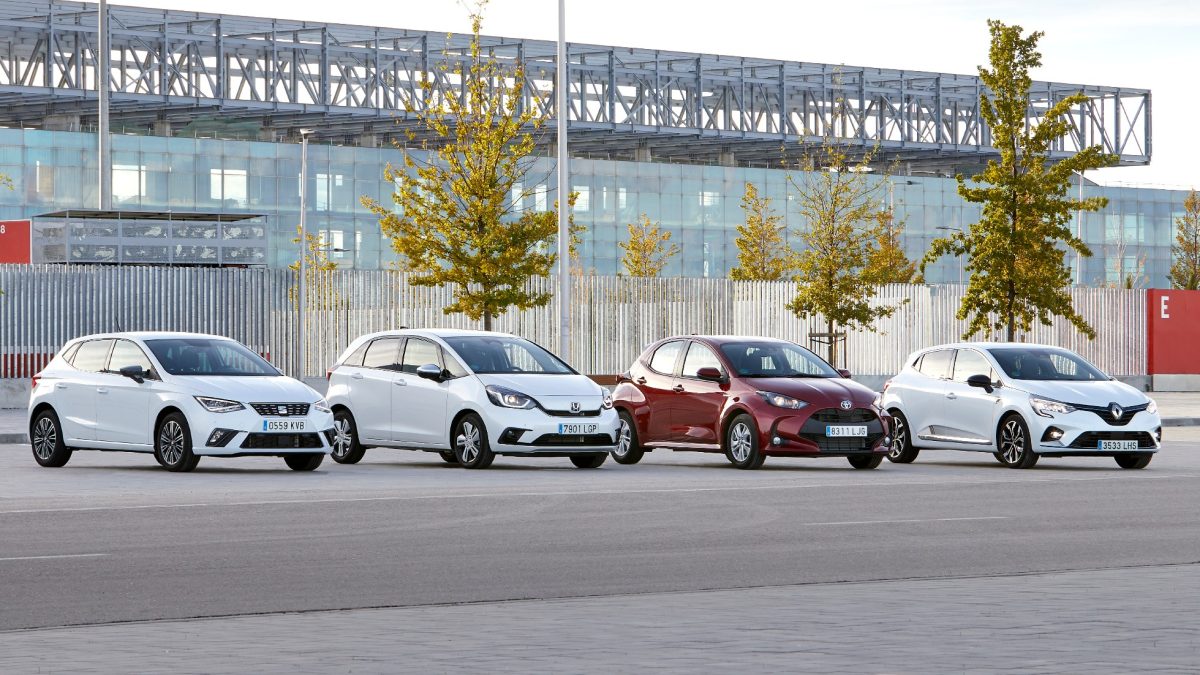 Son los coches sin enchufe más limpios y eficientes del mercado, y los que menos consumen, sobre todo en ciudad. Tienen un tamaño ajustado para aparcar, un interior bien aprovechado y prestaciones suficientes para poder viajar. Esta prueba reúne a cuatro utilitarios con mecánicas híbridas, tres con un motor de gasolina y otro eléctrico que sirve de apoyo y ayuda a gastar menos. Dos son japoneses, los nuevos Toyota Yaris y Honda Jazz, y uno europeo, el Renault Clio, que estrena un módulo híbrido inspirado en los KERS de Fórmula 1.