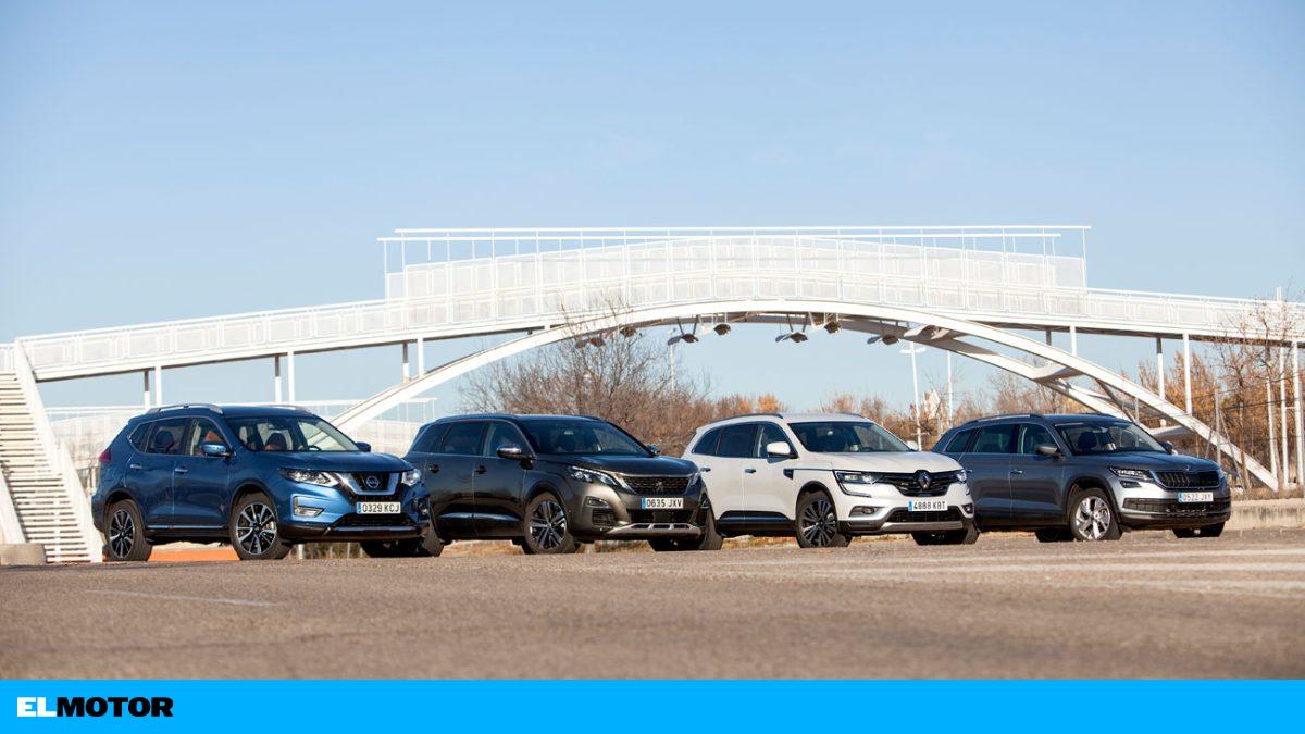 En el diseño interior también domina el Peugeot con una puesta en escena más sofisticada, tanto en la instrumentación como en el salpicadero, con los mandos tipo teclas de piano. Y le penaliza el puesto de conducción, que no se adapta bien a los más pequeños. El Renault es moderno pero más sencillo y destaca por su vistosa pantalla táctil. En el Skoda prima la funcionalidad, con un ambiente limpio y con todo a mano. Y el Nissan es el más discreto, tanto por el cuadro como por la pantalla, que es la más pequeña.