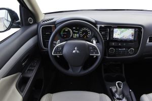 Mitsubishi Outlander PHEV. El todoterreno japonés tiene el módulo eléctrico más avanzado y sofisticado. A pesar de su voluminosa carrocería, anuncia 52 kilómetros de autonomía y 44 g/km de emisiones de CO2. En nuestra prueba agotó las pilas a los 41 kilómetros sin hacer grandes esfuerzos en la conducción, y permite regular la retención del motor con unas levas en el volante para aprovechar al máximo las inercias cuando se llega a vela a los semáforos. El consumo urbano hasta cumplir 100 kilómetros subió a solo 5,6 litros. Y en carretera acusa más su peso y tamaño y ha gastado 9,5 litros.