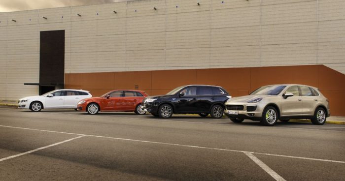 Los modelos elegidos son dos todoterrenos, Mitsubishi Outlander PHEV y Porsche Cayenne S E-Hybrid, y dos turismos, Audi A3 Sportback e-Tron, un familiar compacto, y Volvo V60 Plug-in Hybrid, una ranchera de tamaño medio. Triunfa el Porsche, porque tiene que haber un ganador y es el más completo, aunque caro. Pero lo importante es que todos reúnen el cóctel mecánico que la mayoría de los usuarios consideraría idóneo para su coche familiar: un motor térmico de gasolina o gasóleo para viajar, y otro o varios eléctricos con un módulo de baterías recargable en casa para resolver los trayectos diarios solo con la energía de las pilas. Así se evita contaminar en ciudad y no se sufren las carencias de autonomía de los modelos eléctricos.