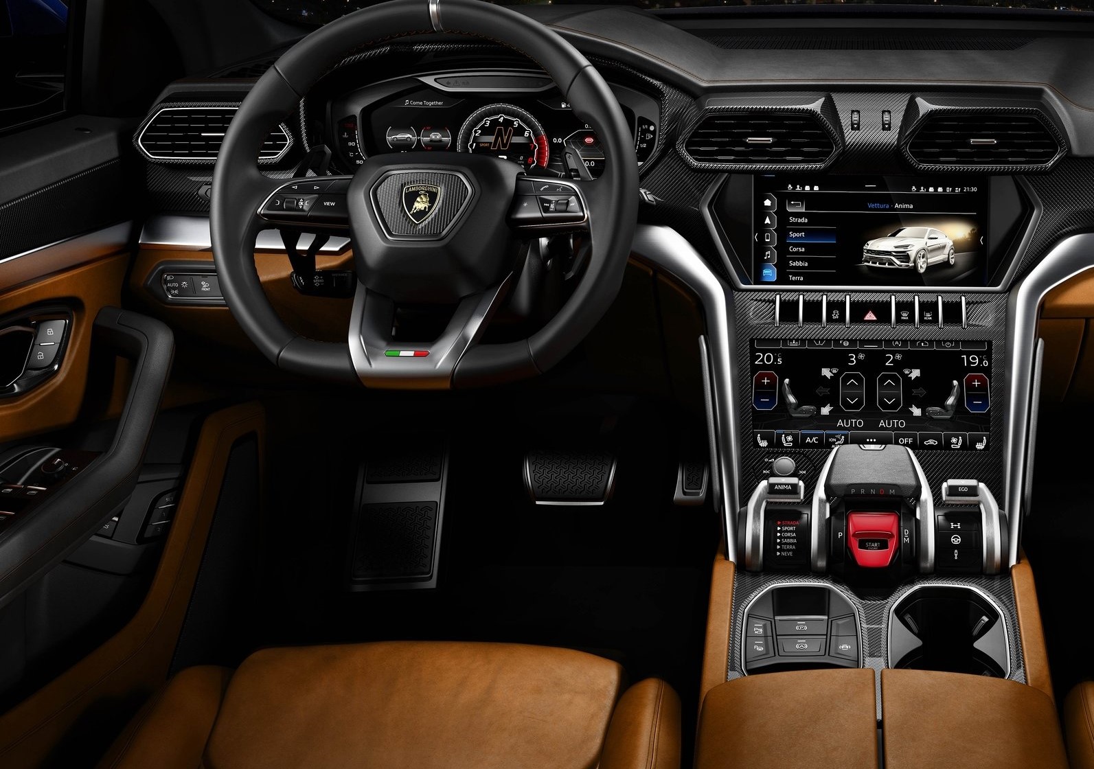 Los grandes neumáticos, la suspensión electrónica, la tracción 4×4 de reparto variable y la dirección a las cuatro ruedas, consiguen que las 2,2 toneladas de peso parezcan menos y que el Urus se maneje casi como un turismo de alto rendimiento.
