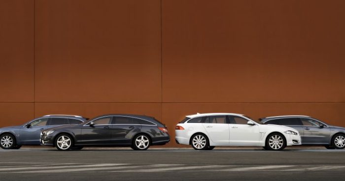 Dos alternativas diferentes según la economía del comprador. El Mazda 6 Wagon y el Peugeot 508 SW tienen precios más asequibles y motores más pequeños. El Jaguar XF Sportbrake y el Mercedes CLS Shooting Break forman parte de las rancheras más exclusivas y sofisticadas del mercado. El Mercedes y el Jaguar van sobrados de potencia y prestaciones. Sus motores 3.0 V6 –275 y 265 CV con cambios automáticos accionables en el volante de ocho y siete marchas, respectivamente– empujan con mucha fuerza a todos los regímenes y permiten viajar a punta de acelerador y adelantar en un suspiro. A pesar de tener 10 CV y una marcha menos, el CLS corre algo más que el XF, sobre todo en recuperaciones y cambios de ritmo. Pero el Jaguar tiene un cambio más rápido y efectivo, tanto en uso automático como cuando se acciona con las levas del volante.El Mazda 6 ofrece unas prestaciones superiores al Peugeot. Su motor 2.2 diésel biturbo (150 CV) es de lo mejor en su cilindrada, a la altura de los mejores BMW. Responde con fuerza desde abajo y supera las 5.000 vueltas casi como si fuera de gasolina. Y el cambio de seis marchas –rápido y directo– permite sacarle todo el partido. Así, adelanta con nervio y apenas exige reducir: se recupera muy bien en todas las marchas. El 508 tiene una respuesta muy suave, pero algo anodina. El motor 2.0 HDi (140 CV) acusa su menor cilindrada y, aunque responde bien a bajo y medio régimen, se queda sin fuelle a 4.000 vueltas. Así, exige reducir más y se queda justo de potencia si se viaja cargado y al adelantar.El Jaguar y el Mercedes permiten elegir el equilibrio entre estabilidad y confort con una tecla que regula las suspensiones. Y el XF marca más las diferencias, porque en el modo normal es muy cómodo y apropiado para autopistas –no sacrifica en exceso la estabilidad– y en el dynamic se convierte en un deportivo de reacciones ágiles, firmes y efectivas en las curvas que hace disfrutar al conductor. El Mercedes varía menos: no es tan blando en el modo confort ni tan firme en el sport. Y aunque la estabilidad es muy buena, resulta menos ágil. Pero se disfruta mucho por su tacto suave y exquisito, hace todo fácil y no cansa nada, incluso cuando se le exige. Solo acusa algo más las inercias en zonas muy viradas. El comportamiento del Mazda es más ágil y directo que el del Peugeot, y resulta más divertido. Tiene una dirección menos precisa en recta, pero el tren delantero entra mejor en las curvas y el trasero ayuda a redondear. Los dos balancean poco, pero el 508 va más suelto de suspensiones: se mueve más en vertical y no transmite tanto aplomo. En cambio, tiene un tacto de dirección más agradable y preciso. La calidad de conducción del XF y el CLS es impecable, y el 508 resulta más suave y agradable que el Mazda 6, aunque menos deportivo. En los frenos, el XF para en menos metros que el CLS, y el 508 tiene un tacto más firme que el Mazda, aunque frenan casi igual.